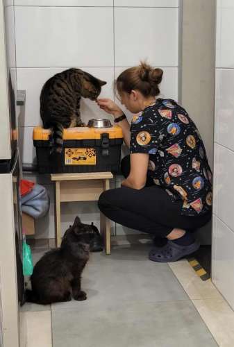 Pradžia jo gyvenimo buvo kaime pas bobutę su visomis iš to išplaukiančiomis pasekmėmis – nekastruotas, nesirūpinama jo sveikata, seno ir pirma laiko apseno, sirguliavo, bobutei palikus šį pasaulį, artimųjų atgabentas ir atiduotas į prieglaudą, stresavo neėdė, nepadėjo pabarimai ir pabaksnojimai, atsinešus į kliniką lašalinei pasiliko nakčiai, pavalgė, grąžintas atgal į narvuką vėl nevalgė, vėl atsineštas ir… va taip, netyčia, taip matyt lėmus žvaigždėms, jau metai laiko gyvena VIP zonoje – globos namų vet klinikoje. Aišku, neslėpsim, darbo čia, judesio kiaurą dieną ir ramiai nepasėdėsi, nebent esi Bosas ir kaip toks, čilini kad ir kas. Pradžioje buvo atsargus, atsitraukęs, nelendantis į akis, pasirenkantis vietą miegojimui ant popierių dokumentų, užrašinių, PC, šildomų grindų, tarp narvukuose po narkozių snaudžiančių ir procedūrų laukiančių katinukų ir pasisverti atėjusių šuniukų, tada jo veikla plėtėsi iki prižiūrėtojo vis kokio nabago trumpam apgyvendinamo intensyvios priežiūros aplinkoje. Taip Bosas mokėsi ir išmoko gyventi gražiai draugėje su kitais gyvūnais, įsidūkti su saiku, priimti užklystančių santūrų paglostymą, gauti skanuką.