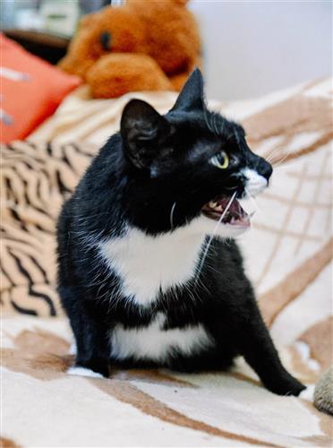 Tvistai apie du metai amžiaus. Kailis žvilga kaip ką tik nuvaksuotas, vos vos ilgėlesnis arba nuo to šilkinio švelnumo net rodos pasipūtęs pūkas. Globojama Tvista su kitomis gentainėmis tai jai žmogaus reikia, bet įpratusi jo trūkumą kompensuoti su kitomis draugėmis tai nuolat iš paskos nevaikšto ir ant rankų ilgai neužsibūna, bet va, vos tik šoną ant sofos nuvirtusį pastebi tai jau prisistato pirmu numeriu ir jį užima iki jis horizontalios padėties laikosi, o bandant keisti tą padėtį tai dar gražiai reikės prašyt Tvistos, kad jau išlaisvintų, leistų kilti ir eiti, nes šonas, žinokit gerai! ant jo šilta, saugu, srovena energija, Tvista murkauja, šypsosi, sugeria jį visu savo kūneliu, žodžiu, vyksta dalinimasis – šiluma šilumai;))Tai katytė jei gyventų viena tai jau žmogus būtų dievas kas minutei, nebūtų kitų kad savo dieviškumą dalintų;) ir, manoma, rankos, glėbys jai taptų įprasta ir pageidautina, dabar dar vis renkasi kitų ilgaūsių draugiją, tai, žinot, kai yra pasirinkimas… 😉