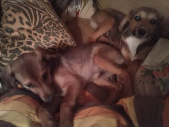 Viskis su Brendžiu mieli mažyliai, apie keturių mėnesių amžiaus ilgakojai šaunuoliai, augsiantys, na panašiai iki kelių galvutėmis, dabar aišku, kad žaismingi, mieli, socializuoti, draugaujantys ir įpratę prie kitų šunų draugijos. Rasti ant dirvono, vidury laukų, susiglaudę, matyt bėgę bėgę ir pavargę nakčiai sukritę, o ryte su pirma rasa laimei rasti, bet nelaimei pamesti iki tol, žmonių, tik neaišku kodėl žmonėmis besivadinančių.